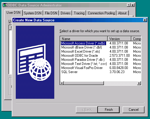 Within MS-Windows, choose Start -> Settings -> Control Panel and double-click the ODBC Data Sources icon